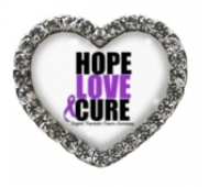 This is our purple ribbon hope love and cure shoe charm. A constant reminder to either yourself or a loved one to keep up hope and spirits! This is also a great gift idea or fund raiser to help support the cause.